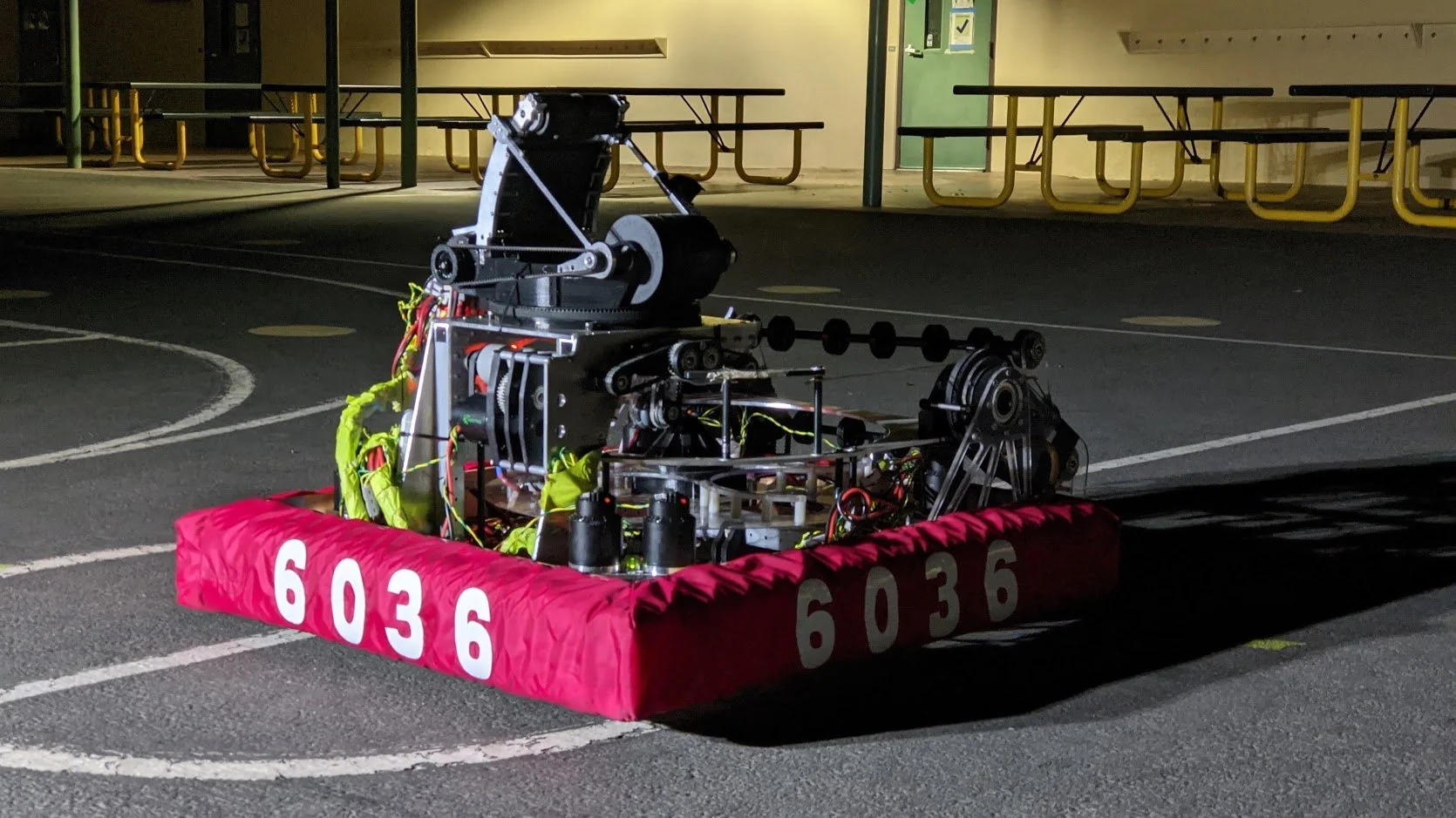 Our robot for the 2021 season featured a four-bar intake, turreted shooter, revolving ball storage and a swerve drive. The swerve drive allowed for rotation even while translating, and the turret allowed for shooting into the target at any angle. The combination of the two allowed for a very flexible design which made driving as easy as possible. Our revolver allowed for rapid cycles with organized ball storage. Our four-bar intake absorbed strong loads by folding upwards upon impact.
